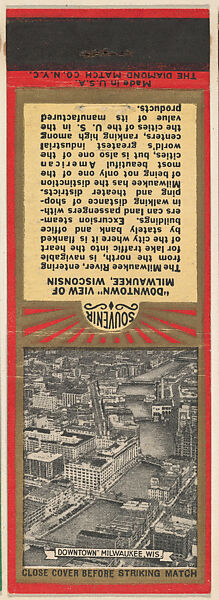- Title: Downtown Milwaukee, Wis. from Milwaukee, Souvenir Views Match Cover series (U40.9)