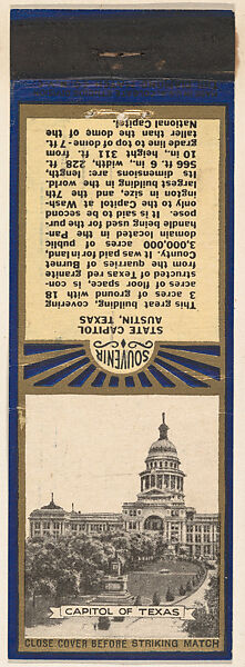 - Title: Capitol of Texas from Texas, Souvenir Views Match Cover series (U40.13)