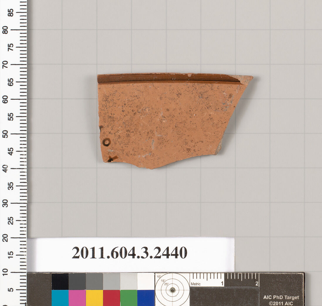 • Title: Terracotta rim fragment of a kylix (drinking cup)