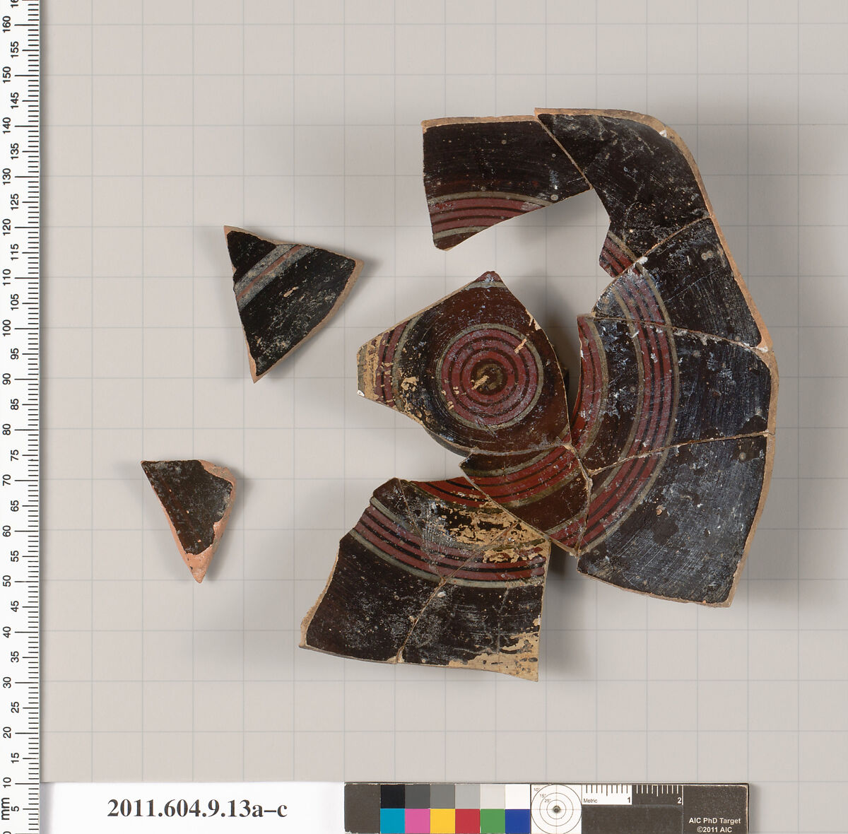• Title: Terracotta fragments of a stemless cup (drinking cup) or a lid