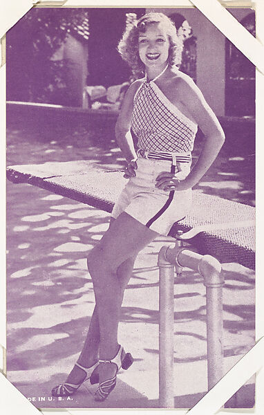 From Actress series (W423). Sold through arcade vending machines. Postcard-sized thick card. Black and white or color toned. Blank back. Printed at lower edge of card, in white: MADE IN U. S .A.