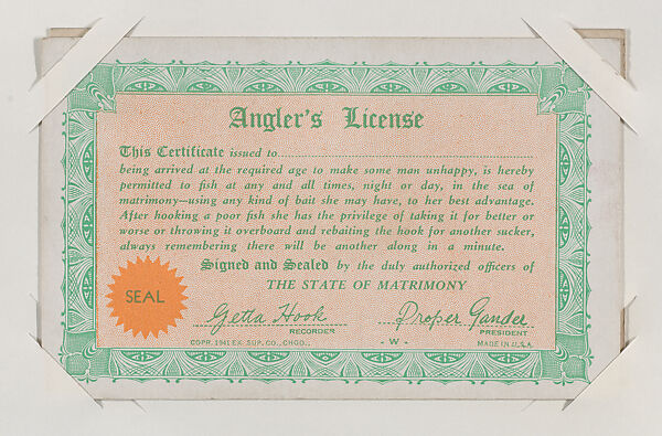 - Title: Angler's License from Exhibit Comics Cards (W431)