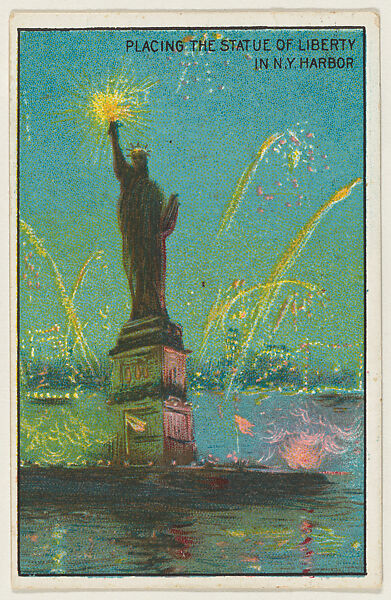 - Title: Placing the Statue of Liberty in N.Y. Harbor, from the "Historical Events" series (T70), issued with Just Suits Cut Plug Tobacco