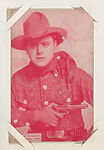 From Western Stars or Scenes Exhibit Cards series (W412). Distributed by Exhibit Supply Company of Chicago, Mutoscope or other companies. Dispensed in arcade machines. Postcard-sized thick card. Color toned.