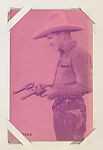 From Western Stars or Scenes Exhibit Cards series (W412). Distributed by Exhibit Supply Company of Chicago. Dispensed in arcade machines. Postcard-sized thick card. Pink toned.