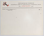 In 1921, the Soviet artist Aleksandr Rodchenko exhibited three monochrome paintings--"'Pure Red Color," "Pure Blue Color," and "Pure Yellow Color"--works intended to mark the end of painting. He also renounced the term "artist", choosing instead to be called "constructor" or "engineer" to reflect both the role of industry in society and the arts and his desire to work in the service of the government by producing posters and other advertisements intended to serve as propaganda. He also designed workers' uniforms and such things as letterhead and logos intended to support state industries and, by extension, the Soviet government. He created many pieces--logos, advertisements, letterhead for stationery, packages, posters, etc.--for the state-owned Russian airline Dobrolet State Merchant Air Service, beginning in 1922-1923, after Lenin instituted his New Economic Policy (NEP), which allowed for the creation of a limited number of private companies in the Soviet Union. Rodchenko and several other artists and intellectuals decided to work in the service of state-owned companies against which the private ones were competing to support the Soviet regime. The Dobrolet logos, pins, posters, and letterhead are all based on the Junkers aircraft, the basic unit in the airline. Rodchenko's interpretation ranged from more representational to more abstract and geometric, but in each iteration, he showed the aircraft at a diagonal to emphasize energy, movement, and technology.