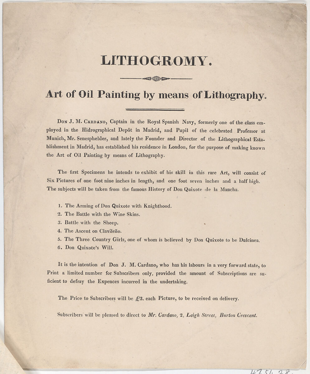- Title: Trade Card for José Maria Cardano, Lithographer