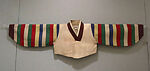 The thicker material and quilted technique make this a winter jeogori. The color stripes on the sleeves are called saekdong which is often used to decorate festive attire and children’s clothing.