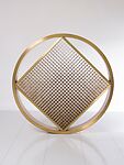 Work #9 is a sculpture consisting of 625 brass units tightly packed into a square and encircled by a brass wheel that sits atop a specially designed pedestal to meet the viewer’s eye. When light reflects off the mirror-like surface, the sculpture radiates like a prism. This configuration makes it appear as if the dense material emits light, achieving Miyawaki’s vision of sculptural dynamism and lucidity. The viewer is meant to interact with the units to further create variable light effects. Deeply influenced by Laozi’s philosophies of flow and change, Miyawaki’s variable sculpture of geometric forms and solid material elicits a range of physical and emotional responses.