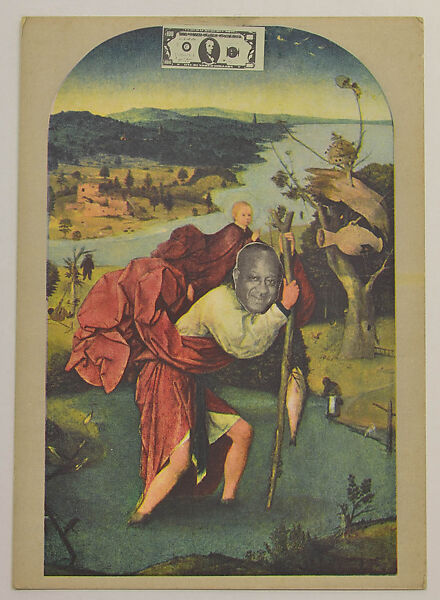 Ted Joans was a poet, musician, and visual artist, whose work intersects with many intellectual, political, and social movements of the twentieth century. A close friend of famed jazz musician Charlie Parker, Joans adopted the motto, "Jazz is my religion, surrealism is my point of view," not only to describe the forms of his artistic improvisation, but his personal attitude to life. In 1990 he began Some Sum (of our Ancestors were Old Masters too!), a series of collages on souvenir art postcards in which he inserted a Black figure into the composition or covered the face of an existing figure with that of a Black man or woman. Often the latter were musicians and singers such as James Brown, Aretha Franklin, and Stevie Wonder, among others. Drawing on the legacy of Surrealism, Joans's collages produce both humorous insights and razor-sharp critiques of mainstream cultural criteria for determining historical worth, aesthetic taste, and financial value.