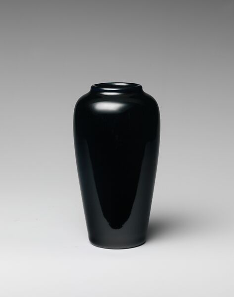 This vase of unusually small scale, with its dark mirror-like glaze may have been a sample piece demonstrating a particular glaze. It is uncharacteristic in the pottery's oeuvre in that it bears no painted decoration. For other examples of Rookwood Pottery in the American Wing see, 45.147, 69.17, 69.37.1–.3, 1973.93, 1974.214.28, 1980.452, 1980.453, 1981.443, L.1999.101, 1991.214, and 1991.335.