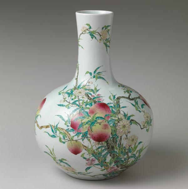 Chinese porcelain and ceramics like this one continue to inspire contemporary artists. Contemporary pottery still uses many shapes and motifs that derive from China. Vase with peaches, 18th century. Qing dynasty (1644–1911). Porcelain with overglaze enamels; H. 20 1/8 in. (51.1 cm). The Metropolitan Museum of Art, New York, Mr. and Mrs. Isaac D. Fletcher Collection, Bequest of Isaac D. Fletcher, 1917 (17.120.193)