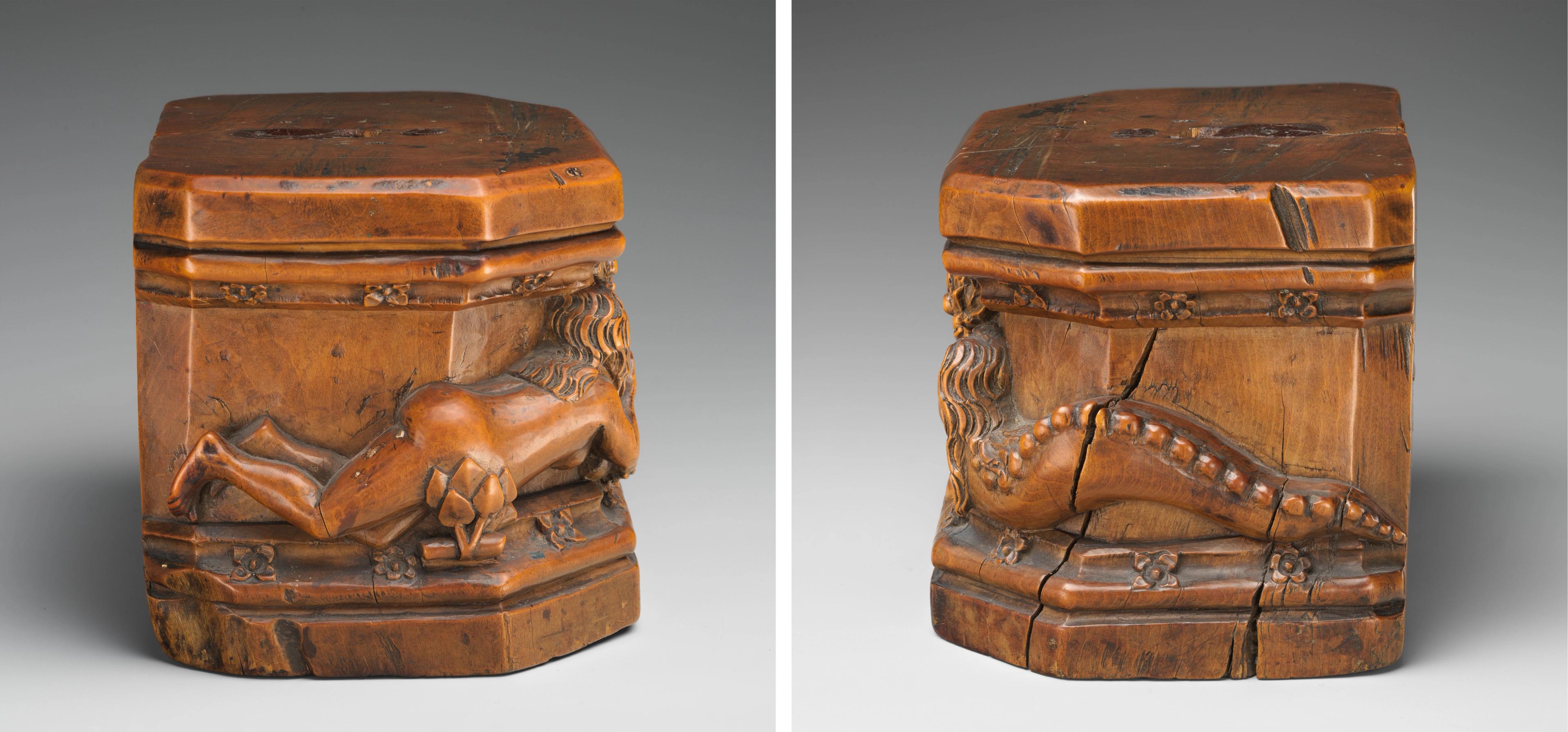 Base for a statuette, 1470-80. South Netherlandish. Boxwood. 3 1/2 × 4 7/8 × 3 3/8 in. (8.9 × 12.4 × 8.6 cm). The Metropolitan Museum of Art, New York, The Cloisters Collection, 1955 (55.116.2)