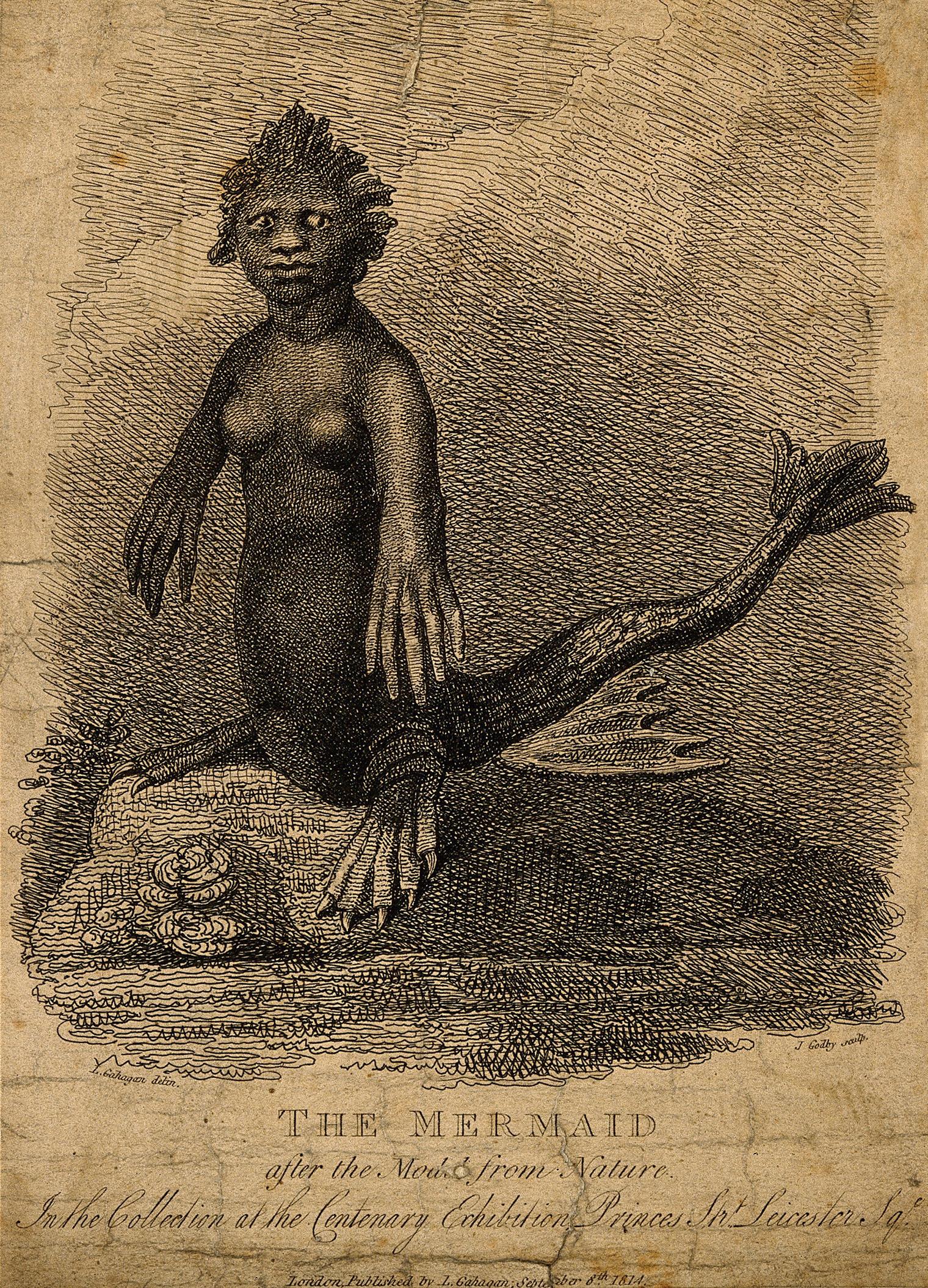 The Asiatic woman continues to be conflated with artificial life to this day. In science-fiction cinema from Blade Runner (1982) to Cloud Atlas (2012), she is the cyborg. But there are other gendered, racialized, and interstitial beings that predate and anticipate the dream of the cyborg. Consider the mermaid, another “in-between” creature who enmeshes the human and the inhuman. The fear of and fascination with the mermaid in many cultures since antiquity has much to do with deep-seated anxieties about interspecies encounters, worries that survive in modern-day eugenics and anti-miscegenation sentiments.