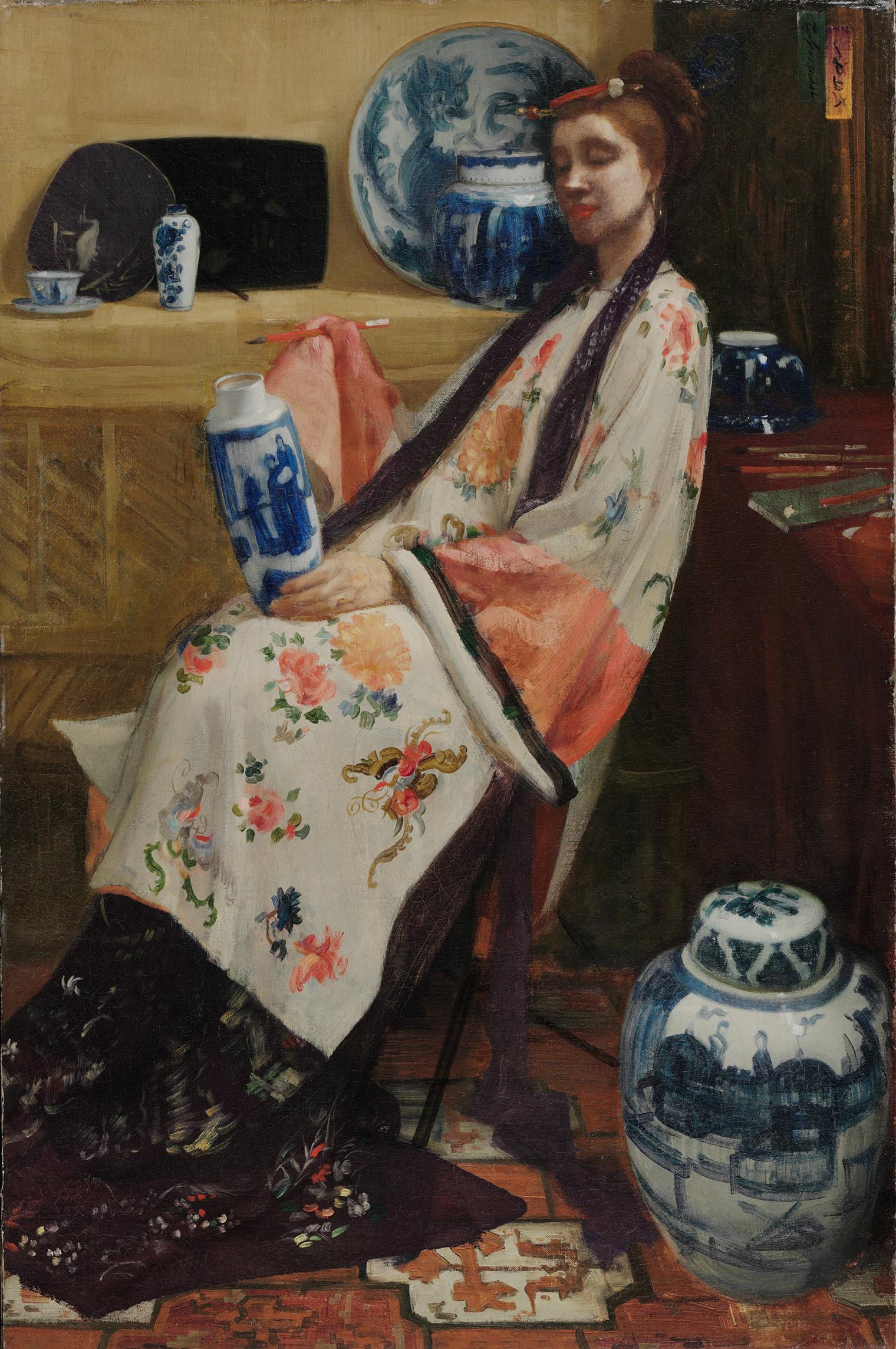 Left: James McNeill Whistler (1834–1903). Purple and Rose: The Lange Leizen of the Six Marks, 1864. Oil on canvas, 36 3/4 x 24 1/8 in. (93.3 x 61.3 cm). The Metropolitan Museum of Art, New York, Johnson G. Johnson Collection, 1917, cat. 1112.
