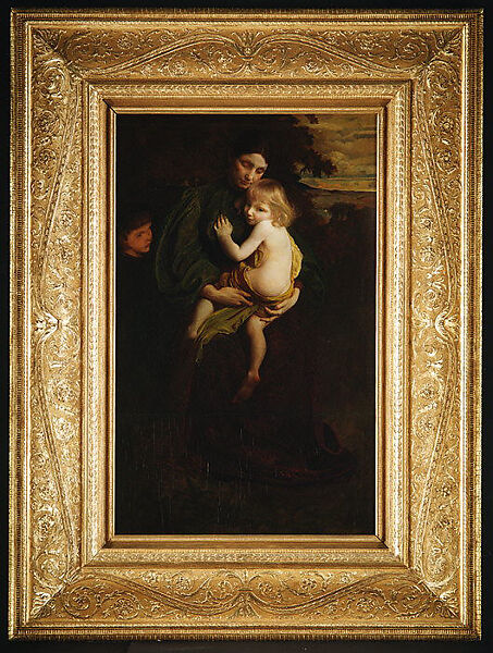 About 1892, Brush began a series of paintings depicting family groups which would occupy him for the next two decades. In "Mother and Child" the artist portrays his wife, Mary, holding their daughter, Nancy, accompanied by their son, Gerome. Brush's figures are well-observed and academically painted, reflecting his six years (1874-80) of training in Paris under Jean-Léon Gérôme. Contemporary critics remarked on the obvious relation of Brush's painting to Italian Renaissance depictions of the Madonna and Child but praised it as well for its universal sentiment-as a modern portrayal of the bonds between family members.