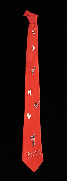 Pablo Picasso is one of the most recognizable artists of the 20th century. He was adept at producing thought-provoking works of art in an unstable time. Picasso's art on this tie is likely the product of a rare custom design created in a hand printing process. It is unique, complete with Picasso's printed signature, furthering its status as wearable art.
