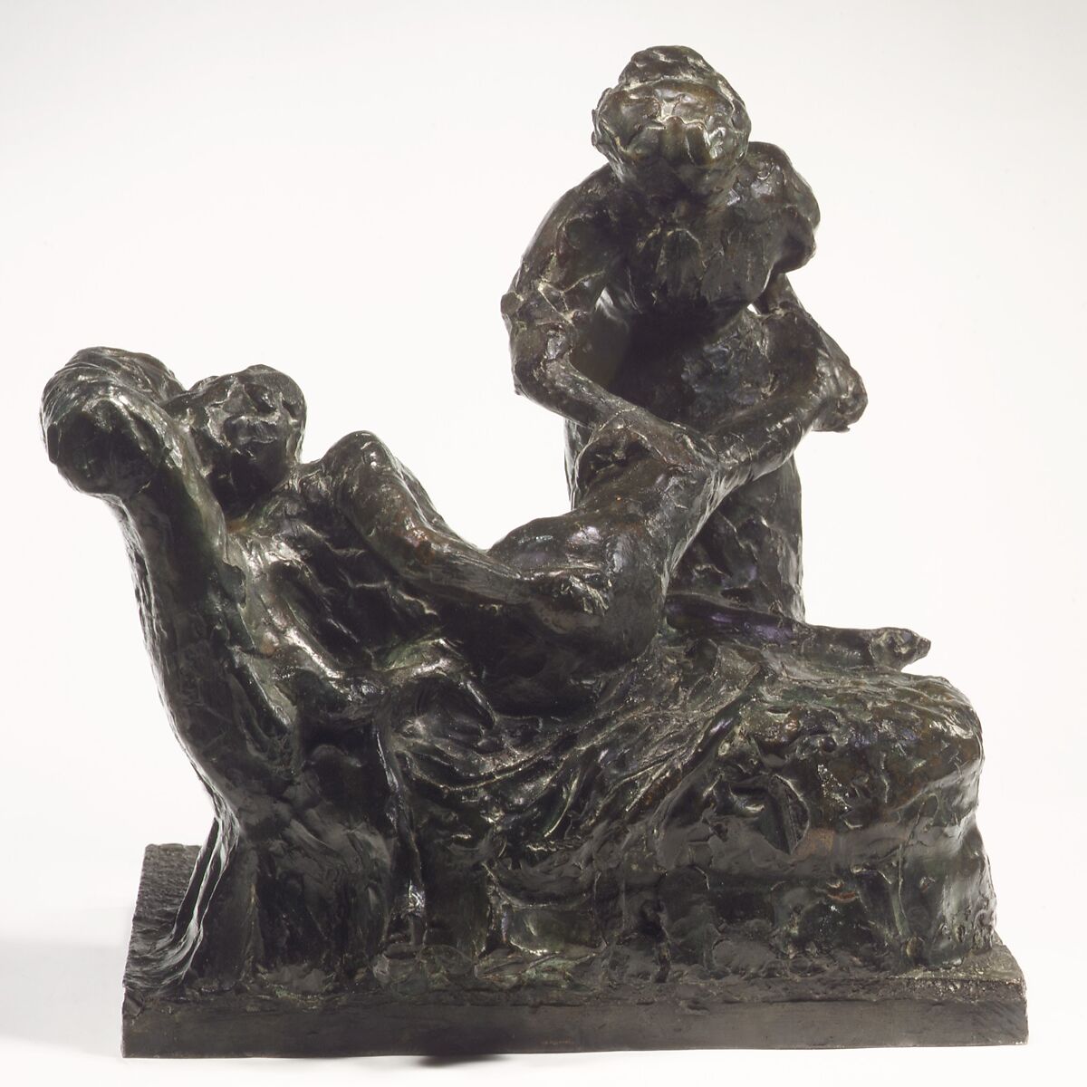 Upon Degas's death in 1917, more than 150 figurative sculptures were found in his studio. Most were made of fragile wax, clay, and plastiline (a wax- and oil-based modeling material). Many had deteriorated. Only a few were preserved in copies that had been cast from them in plaster. Except for the wax Little Fourteen-Year-Old Dancer (Washington: NGA) none of these sculptures had been publicly exhibited during the artist’s lifetime.