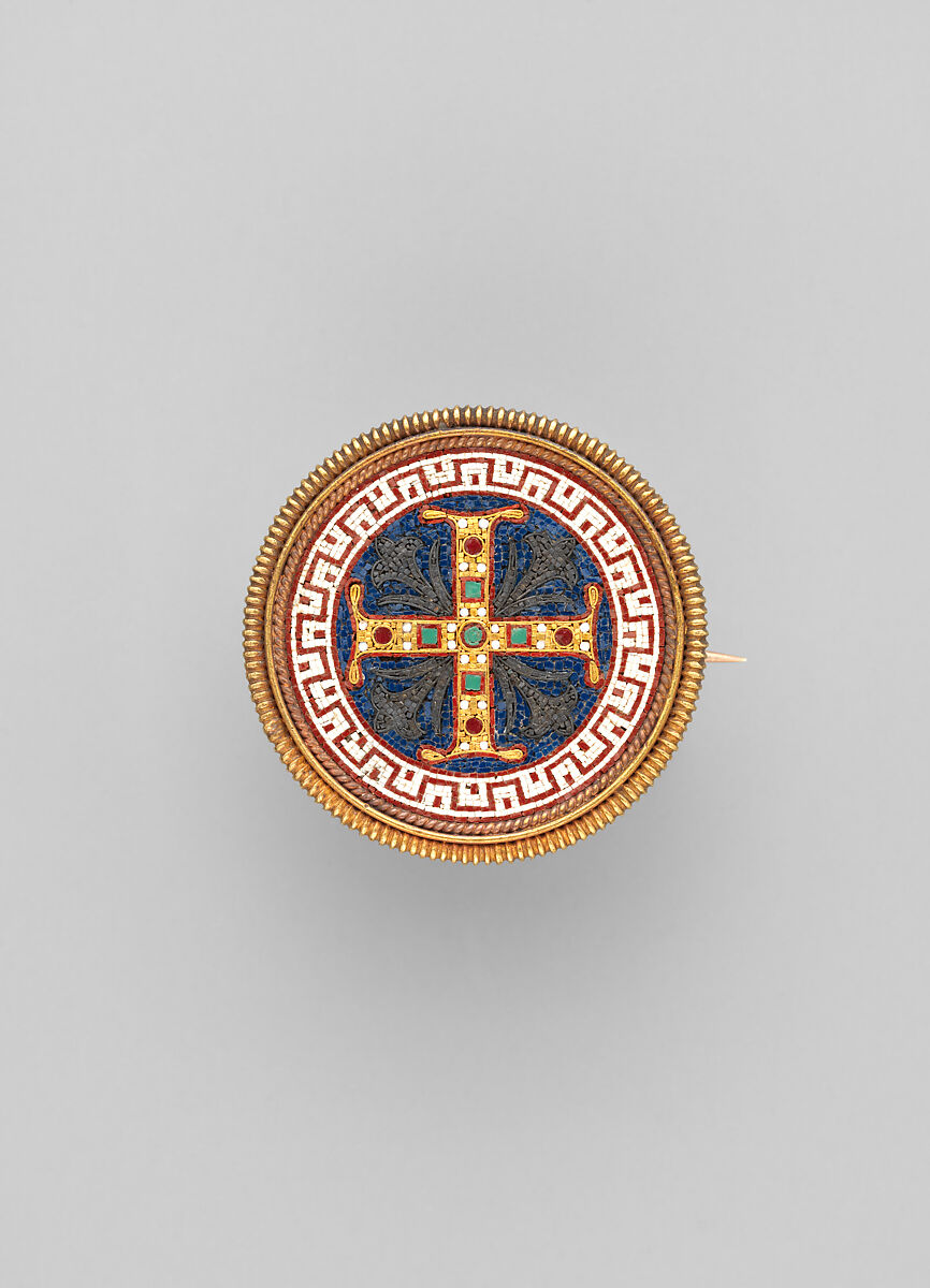 This object and the group to which it belongs (see also 2014.713.1–.10) reflect the keen interest in historical styles in nineteenth-century Europe. Artists and designers looked to various artistic periods for forms and motifs. There was also an interest in reproducing works of art from earlier epochs with historical accuracy—an approach that is particularly evident in the taste for so-called archaeological jewelry (jewelry based on excavated examples from antiquity), which reached its zenith in the middle of the century.