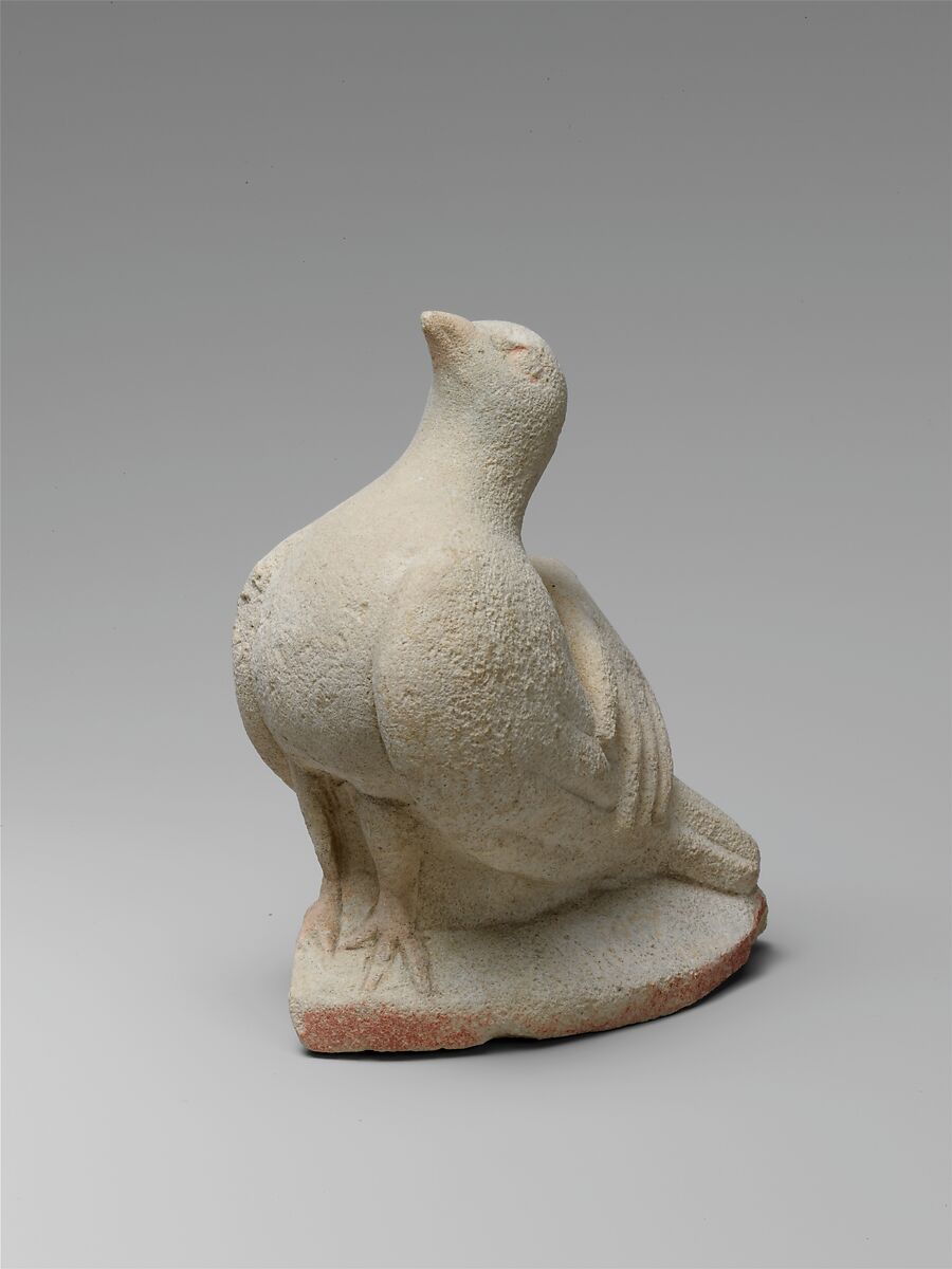 - Title: Limestone statue fragment of a left hand resting on a dove