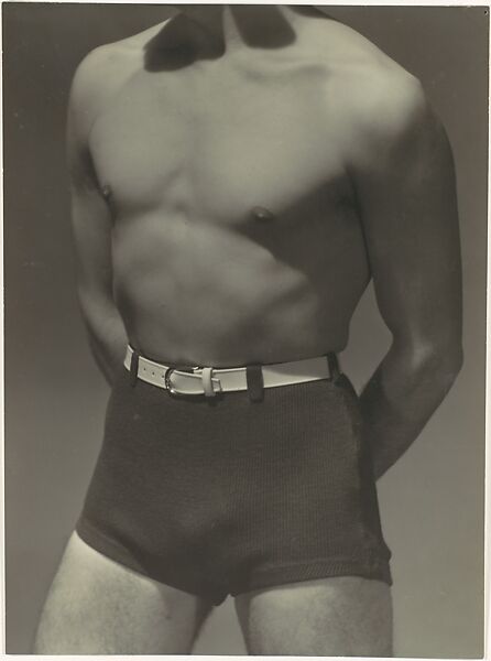 The torso filling this frame is as finely modeled and still as a classical sculpture. It belongs to a young Horst P. Horst, who would soon become a celebrated fashion photographer. Newly arrived in Paris from a far-flung German province, he captivated the city’s cultural elite with his brawny good looks. Photographing him for a swimwear campaign, his mentor and life partner George Hoyningen-Huene played into rumors that Horst was not really a young artist, but a wayfaring sailor on extended shore leave.