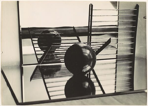 Initially a painter who studied under Fernand Léger, Henri turned to photography in 1927 after attending a summer course at the Bauhaus with László Moholy-Nagy. The influence of both heritages is apparent in this powerful abstract image. Henri arranges smooth, industrially produced objects—a round ball and a metal grate—against mirrors to create a play of space and reflective surface. Simultaneously, she imbues her objects with stasis and poise that resonates with the universalizing impulse of Purism, a painting movement advocated and practiced by such artists as Léger, Amédée Ozenfant, and Le Corbusier, which sought to depict the simple, essential geometries of everyday objects.