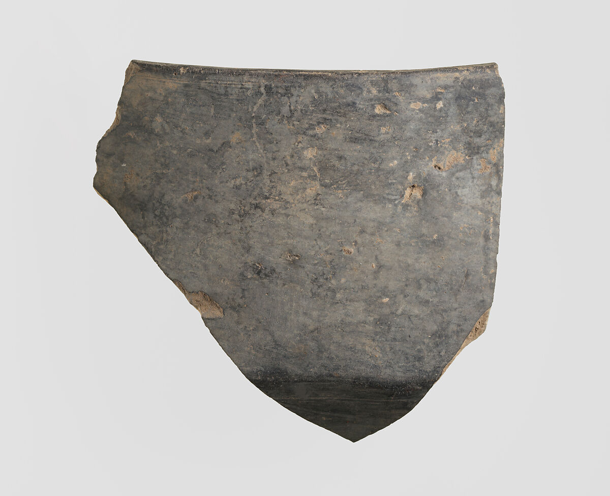 This sherd is made of grey burnished clay. It is typical of Namazga IV ceramics from Turkmenistan and Hissar II ceramics from Iran, and likely date to ca. 3100-2500 B.C. It was excavated in 1937 at a prehistoric site in the vicinity of Nishapur in northeastern Iran. While Nishapur itself was founded by the Sasanian king Shapur I (reigned ca. A.D. 241-272), this sherd shows that human habitation there goes back to the prehistoric period. Furthermore, the prehistoric pottery from Nishapur has close affinities with ceramic materials from Central Asia rather than with contemporary sites in Iran, meaning that in this period its inhabitants were likely culturally linked to their neighbors to the east. At the same time, Nishapur’s location on what later became known as the Great Khorasan Road suggests that it was part of the trade network that facilitated the import of precious stones such as lapis lazuli, carnelian and turquoise from Central Asia to Mesopotamia.
