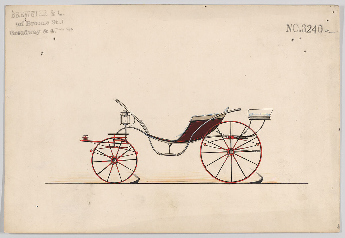 Talented draftsmen employed by the firm included Paul Steinbeck, Herman Stahmer and John Gribbon, the latter teaching at the Carriage Builders and Designers Technical School, which opened in 1880 and was housed initially at the Metropolitan Museum of Art. When the company finally dissolved in 1923, its last owner William Brewster (1866–1949) donated its archive of design and presentation drawings to the Museum where he served as benefactor and trustee.