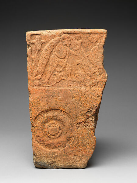 - Title: Tile with Impressed Figure Carrying a Festoon of Flowers