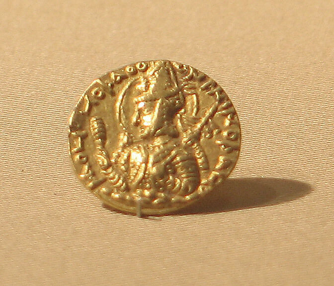 The Great Kushan rulers minted these gold coins in the second and early third centuries. They follow a Roman weight standard, and the rulers present themselves in relation to a range of Near Eastern and South Asian deities, such as the Shiva on the reverse of Vasudeva's coin.