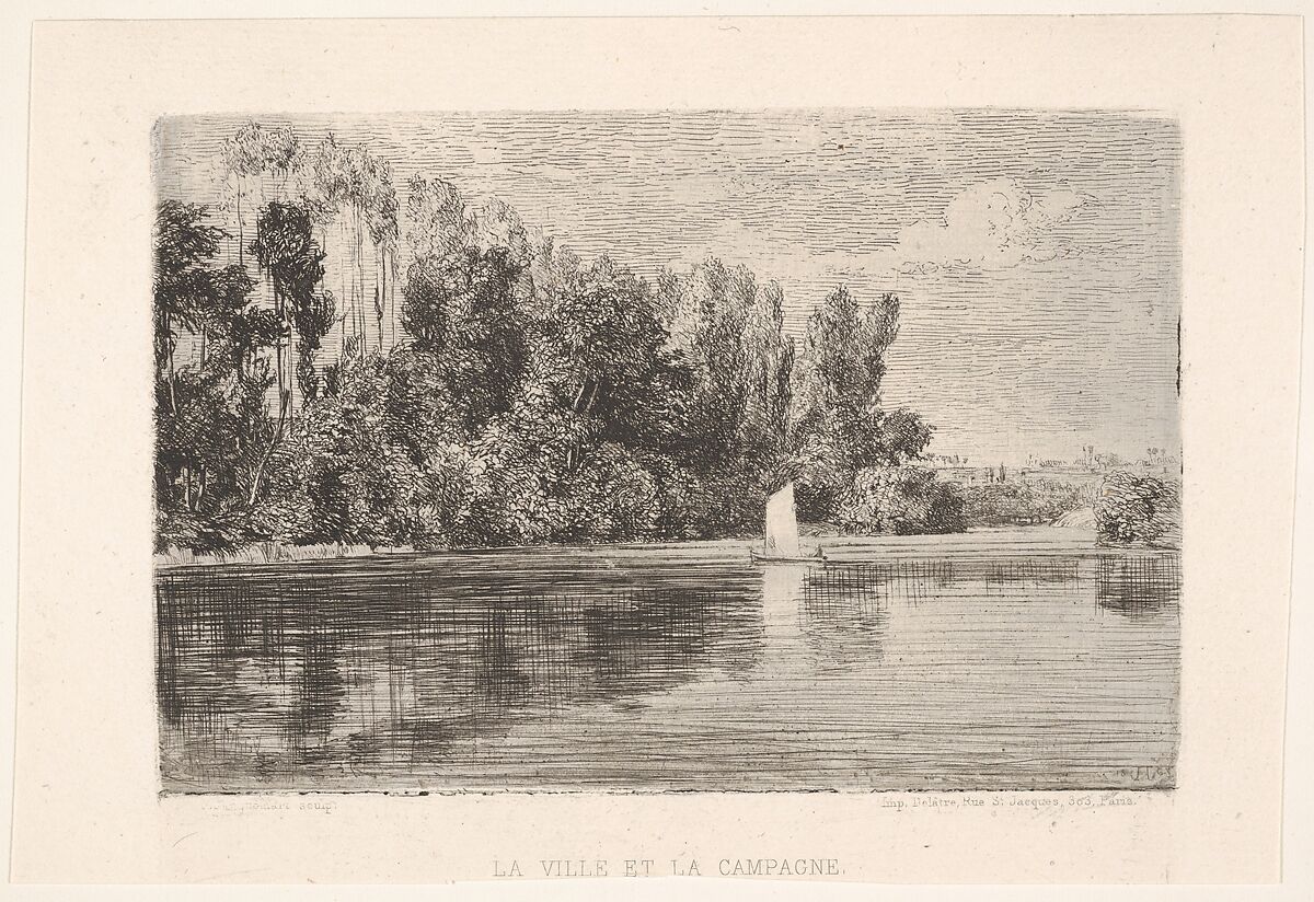 Jules Jacquemart was trained in etching at a young age by his father, an amateur artist, and went on to produce both reproductive and original prints. A founding member of the Société des Aquafortistes, he worked closely with Alfred Cadart and even contributed the title page to the group's first album. The idyllic landscape depicted in this print, from the 1864 edition of "Eaux-fortes modernes," is typical of the subject matter promoted by the group. Its intricately etched combination of scumbled, crosshatched, and parallel lines reflects the interest in both tradition and innovation that characterized the group during the 1860s.