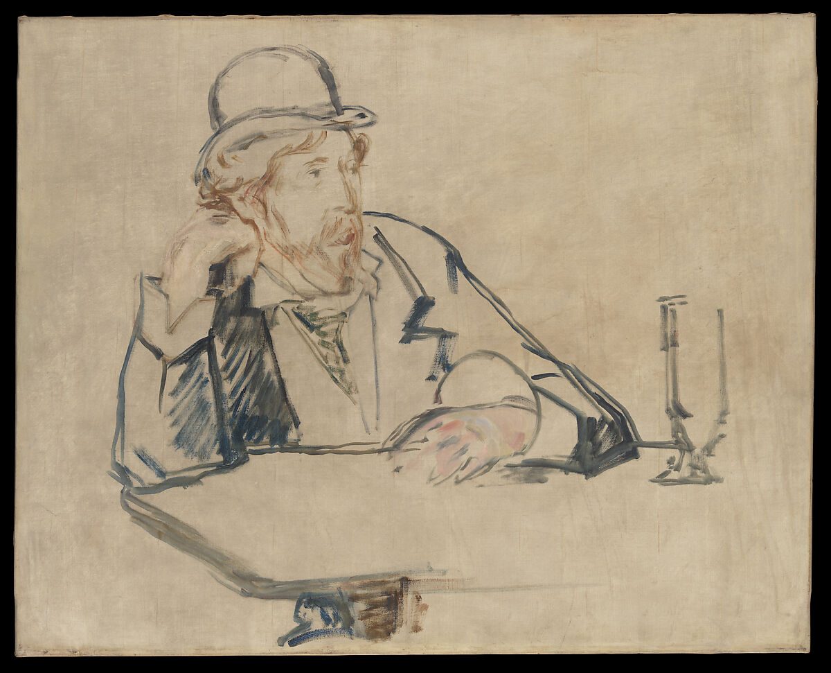 In this unfinished portrait of 1878 or 1879, Manet depicts the Irish writer George Moore (1852–1933) at the popular Café de la Nouvelle-Athènes, a gathering place for artists and writers, where the two probably met.