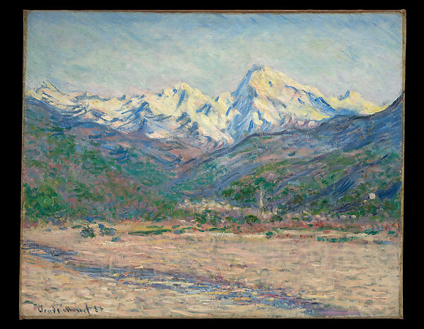 Monet spent three months on the Italian Riviera in early 1884. He wrote a friend, "everything is superb and I want to paint it all … there are many experiments to make. This landscape is a new experience for me." Installing himself in the coastal town of Bordighera, Monet explored the scenic terrain. Here, he employed light, bright tones to depict the snowy Maritime Alps along the border with France. Nestled among the hills is the village of Camporosso, on the banks of the Nervia, not far from the river’s outlet in the Mediterranean Sea.