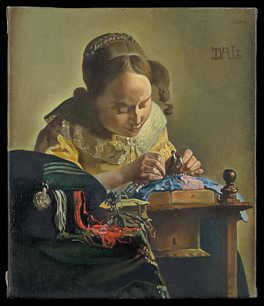 When Johannes Vermeer’s seventeenth-century Dutch painting “The Lacemaker” was in the conservation lab of the Musée du Louvre in 1954, Salvador Dalí began this painting, a meticulous copy of the original. Correspondence between Robert Lehman and Dalí suggests that the collector commissioned Dali’s copy of Vermeer’s masterpiece.