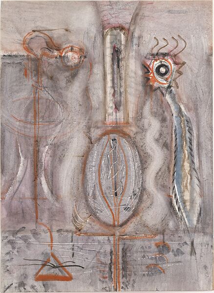 In the mid-1940s Rothko focused on watercolor, experimenting with the medium to produce compositions with pictographic or biomorphic elements that referenced prehistoric forms of expression such as cave paintings, carved symbols, and glyphs. Like his friend and fellow artist Adolph Gottlieb, Rothko drew on the works of European modernists, particularly Paul Klee and Joan Miró, to create an emerging aesthetic language that incorporated cross-cultural imagery. Inspired by Surrealist automatism, in which the artist ceded conscious control to allow the creative forces of the unconscious to act, Rothko developed his abstract imagery in this period. Luminous and transparent, watercolors like the one seen here mark a turning point in his career and prefigure his later radiant, abstract canvases that established him as a key figure in American painting.