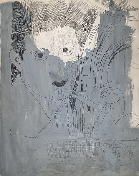 The man holding a pipe is unidentified but likely was copied from a photographic source; magazine and newspaper reproductions often provided the material for Warhol's images of current events and famous personalities. While most of his painted and printed portraits are brightly colored, this drawing retains the grisaille tones of a black-and-white photograph. Self-portraits and portraits of the artist's friends and acquaintances were a theme in his oeuvre for more than thirty years. The intense amount of pencil work in this portrait, however, suggests that it predates his first use of photomechanical silkscreening in 1963.