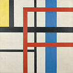 Influenced by the works of Piet Mondrian from the 1910s and 1920s, Diller devised his own abstract formats in the 1930s. Divided into groups called "first," "second," and "third" themes, Diller’s three series explore the movement generated by different arrangements of geometric forms within a square canvas. "Second" theme pictures, such as this, feature a grid system within which rectangular bands of differing widths extend across the canvas.