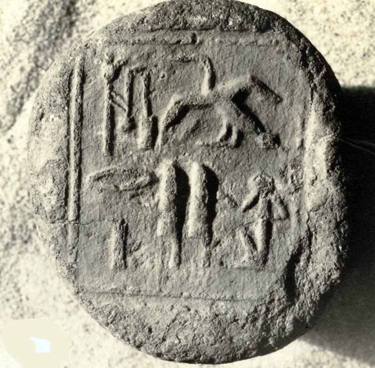 This cone has the impression of a stamp seal inscribed for a scribe named Paroy. For a drawing of this impression see http://www.funerarycones.com/, number 576.