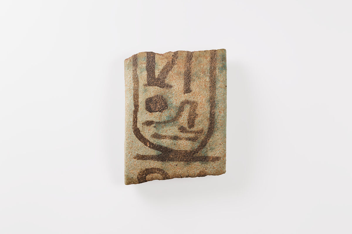 During the winter of 1904-1905, archaeologist William Matthew Flinders Petrie undertook a survey of archaeological sites in the Sinai, including the Temple to Hathor as Mistress of the Turquoise Mines at Serabit el-Khadim. Covering the floor of the sanctuary and its portico, and extending several feet north, was a 2-3 inch thick layer of debris consisting of fragments of vessels, wands, sistra (sacred rattles), menats (sacred necklaces), animal figures, bracelets, and tiles. Made of faience, these objects were originally votive offerings to the goddess, placed in the temple by royal officials hoping to guarantee the success of their mining expeditions.