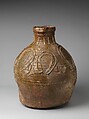 While intended for use in making and storing ale, this jug bears firing cracks on the side that rendered it a "waster," not suitable for holding liquid. The surface is decorated with brooches and horseshoes, emblems of the de Ferrers family. (The French word ferrer means "to shoe a horse.") As Earls of Derby, the family resided at Duffield Castle until 1266, when the building was destroyed following Robert de Ferrer’s rebellion against the king.