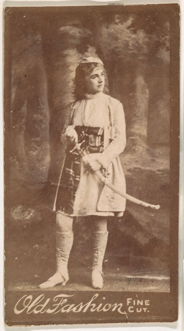 - Title: Actress wearing costume with sword, from the Actresses series (N664) promoting Old Fashion Fine Cut Tobacco