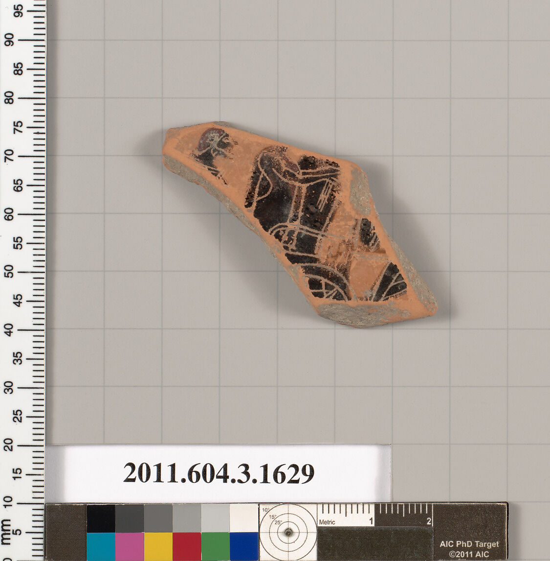 - Title: Terracotta fragment of a kylix: Band cup (drinking cup)