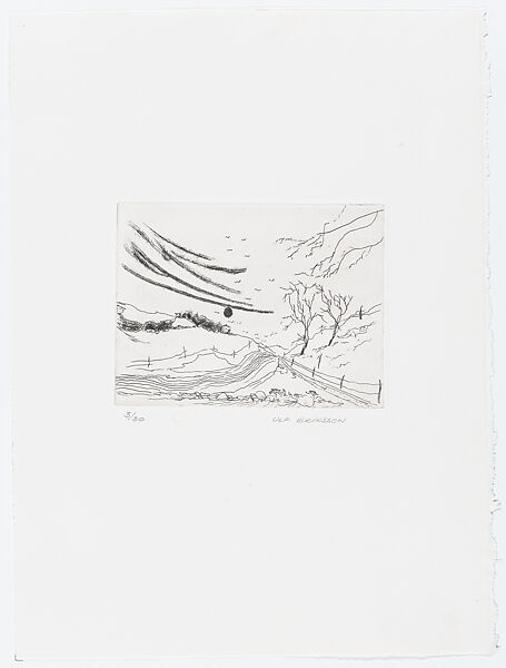 - Title: Landscape with bare trees and mountains in the distance, from "Bilder från min hand" (Pictures from my hand)