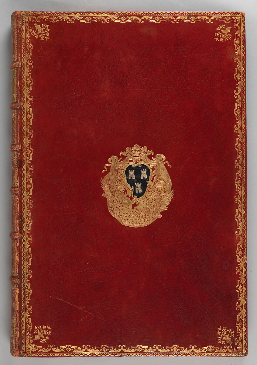 The coat of arms with the three towers struck on the covers, indicate that this folio was once the property of Madame de Pompadour. The mistress of Louis XV had an important book collection and an interest in the Middle East. For that reason, the colored engravings of the various costumes and professions of the Levant included in this volume would have appealed to her.