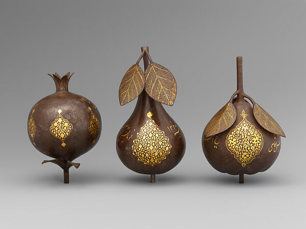 - Title: Three Qajar Gold-Damascened Steel Fruits