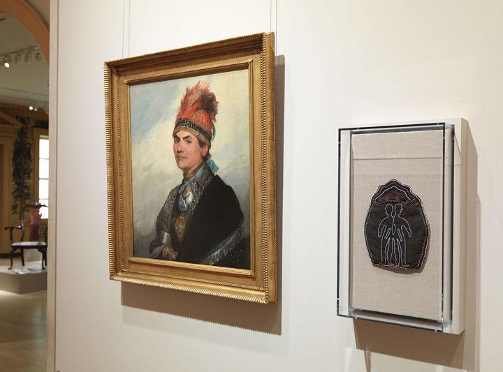 This compelling object is displayed near a 1786 painting by the American artist Gilbert Stuart (1755–1828), Mohawk Chief Thayendanegea, Known as Joseph Brant. The portrait, one of the finest Stuart ever painted, is a promised gift to The Met from an anonymous donor in honor of Annette de la Renta. A revered Iroquois statesman, Thayendanege tirelessly lobbied both British and American authorities, including King George III and George Washington, for his people's survival. Commissioned by his close friend Hugh, Earl Percy, later the Second Duke of Northumberland, the portrait marks a fraternal bond that crossed racial, cultural, and national identities.