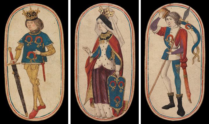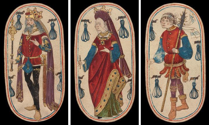 King, Queen, and Knave of Tethers, from The Cloisters Playing Cards