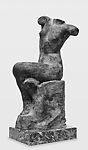 Longman executed “Seated Female Figure” as a companion piece to “Torso of a Woman” (12.52). The crossed legs, extended truncated arms, and twist of the body add an element of dynamism not found in its more subdued pendant. By deliberately choosing to render an incomplete figure, Longman joined a corps of turn-of-the-twentieth-century artists, most notably French sculptor Auguste Rodin, who relied on the part to imply the whole. The bronze surface of “Seated Female Figure” was chemically treated to give it an “antique” patina then popular with American sculptors.