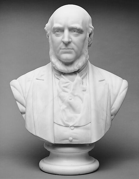 In 1869 Van Wart married Carrie Roberts, the daughter of Marshall Owen Roberts (1814-1880), the American transportation entrepreneur and art collector. He served on the Metropolitan Museum’s Board of Trustees in 1870 and 1871 and was a staunch supporter of American artists. His best-known acquisition is Emanuel Leutze’s “Washington Crossing the Delaware” (97.34). It is unclear whether Van Wart began this portrait of his father-in-law before Roberts died in 1880. The bust is dated 1884 and thus was completed posthumously. The bust reveals Van Wart to be a competent portraitist and is typical of its period in depicted the bearded sitter dressed in the fashion of the day. Captain Marshall O. Roberts gave the portrait of his father to the Museum in 1927, the year of Van Wart’s death.