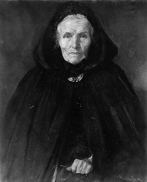 "La Mere Adele" is a sensitive portrait study of an elderly woman shrouded in a dark cloak. Nothing is known as to the identity of the sitter.